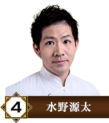 わずか1年半でミシュラン二つ星を獲得した、1位の砂山利治シェフ、2位の吉川正裕シェフという上位シェフが登場!吉川シェフは地元福井の地鶏・副地鶏を使った新しい唐揚げを提案!鶏皮を衣に活用するなどの趣向を凝らした一品で挑む。
