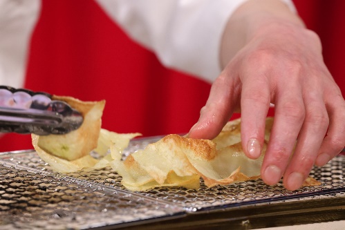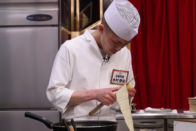 今回は砂糖やみりんを使用せずに素材の甘みだけで仕上げ、生産者の思いやそれぞれのじゃがいものよさを引き出すと言う。男爵いもの桂剥きやメークインの丁寧な裏漉し、日本料理らしい見事な仕事ぶりで意外性のある形に仕上げていくが……。その得点は? 優勝決定戦に進むのはどちらなのか!?