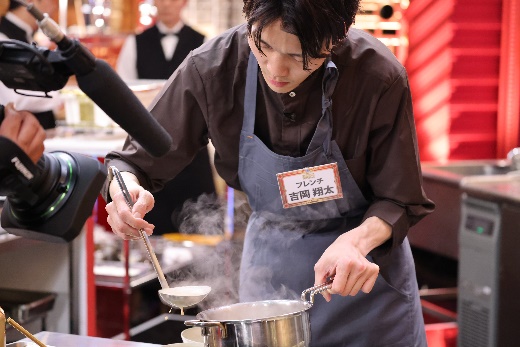 「インスタントラーメン」対決、1人目は大会初出場だが、これまで優勝シェフを輩出してきた激戦区ジャンルのフレンチ代表を勝ち上がってきた男・吉岡翔太だ。実家は福井県にある民宿「よしおかや」。現在は“食の実験室”をテーマにした新しいフレンチで食通たちの注目を集める東京のレストラン「枯朽」の若きシェフとして活躍している。