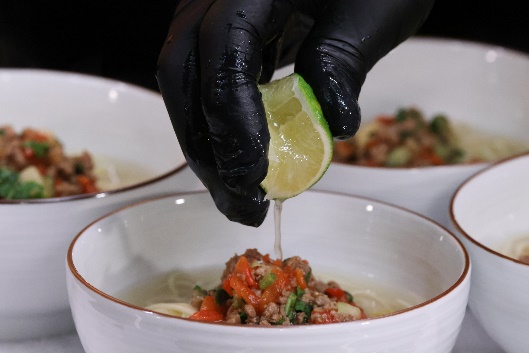 その山下は赤パプリカの網焼きを始めると、玉ねぎ、エシャロット、こぶみかんの葉やレモングラス、仔羊……、さまざまな食材を使いながら完成させたのは食べ進めるうちにスープの香りや味が変化していくといううまみの味変ラーメン。果たしてリベンジは成功するのか!?