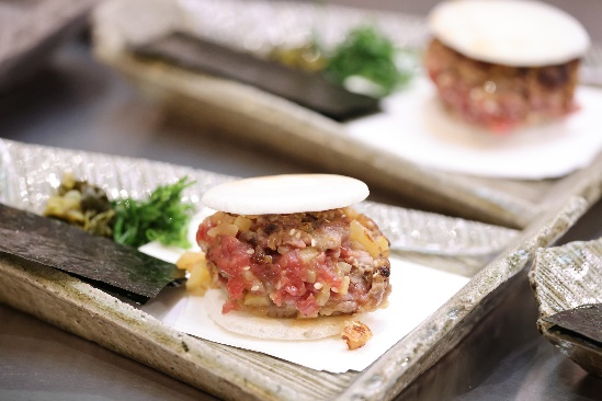 後攻のシェフが用意した食材は、魚の王様クエ、そして牛肉の王様と言われるシャトーブリアン。さらには野菜の王様モロヘイヤも加わる。クエとシャトーブリアンが使われたかつてないミンチが生み出されていく。そしてそれがやがて焼き上がるとき、ハンバーグにかつて経験したことのない香りと味わいの楽しみが引き起こされるという……。その新たな世界は果たして審査員たちをどこへ誘うことができるのか!?