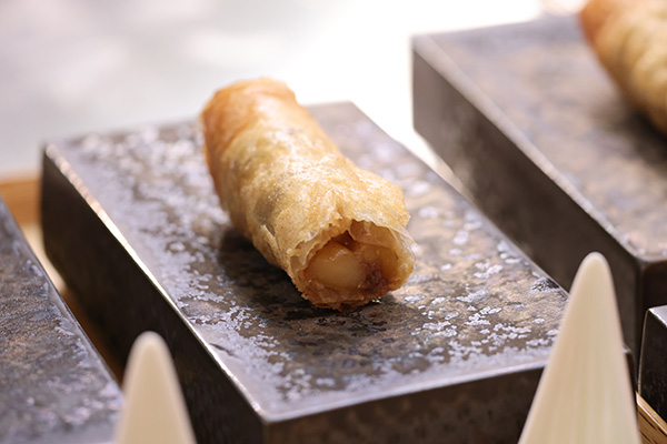 「肉じゃが」対決に登場する1人目のシェフは、中国&アジア料理代表の花田洋平だ。第1回大会では決勝3位に輝き、数々のコンクールでの受賞経験がある超実力派。最初の出場で惜しくも敗退した悔しい気持ちを胸に、2年間さらに自身のスキルを磨いてきた。この6月には「atelier HANADA by 森本」という自分の店を持って独立。絶対に負けられない。花田が使うのはメークインと男爵いも、そしてラムだ。香りをとても大切にする中国料理らしく、さまざまなハーブやスパイス、さらにウイスキーまで使って仕上げていく。料理名は「ラムじゃが」。食感も楽しく、食べながら味が変化していく新しい肉じゃがだというが……。果たして審査員のジャッジは!?